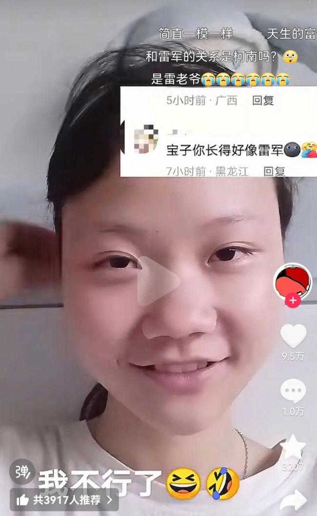 这位女孩发布的视频迅速吸引了大量网友围观,目前该视频已获得9.5万次点赞和1万条评论。网友们纷纷留言调侃,有人称她是雷军的远方表妹“雷赘”,还有人形容她是“雷军小时候”。更有创意的网友为她画上了头发,使她看起来更像雷军。一些网友甚至建议她可以尝试cosplay雷军,并在直播中循环播放“are you ok”。