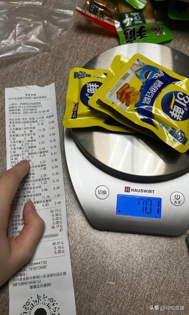 零食店被指每份零食称重误差达16克!近日,有网友发文称,在成都零食有鸣盛世桃园店购物时遭遇称重问题,购买的多类零食回家复称后,发现每份均多称了16克。8月13日,该网友联系上记者并表示,次日向门店反映后,工作人员解释是由于未及时清理小票堆积在秤上所致,并退还了6元差价。