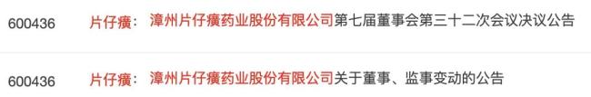 8月13日,漳州片仔癀药业股份有限公司(以下简称“片仔癀”)连发两条公告,均涉及人事调整。