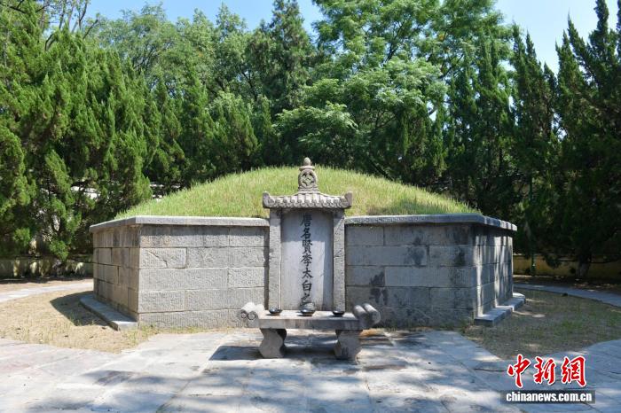 图为自媒体人参观李白雕像。中新社记者 储玮玮 摄