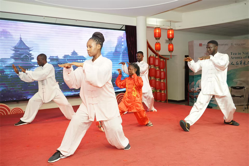 尼日利亚武术爱好者表演太极功夫。尼日利亚中国文化中心供图
