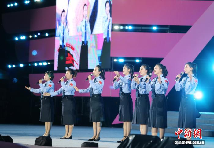8月19日晚,东港市代表队演唱《沿着高速看中国》。黄兴鸿 摄