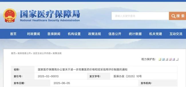值得注意的是,2025年6月5日,国家医保局印发《关于进一步完善医药价格和招采信用评价制度的通知》,对价格招采信用评价制度进行修订。