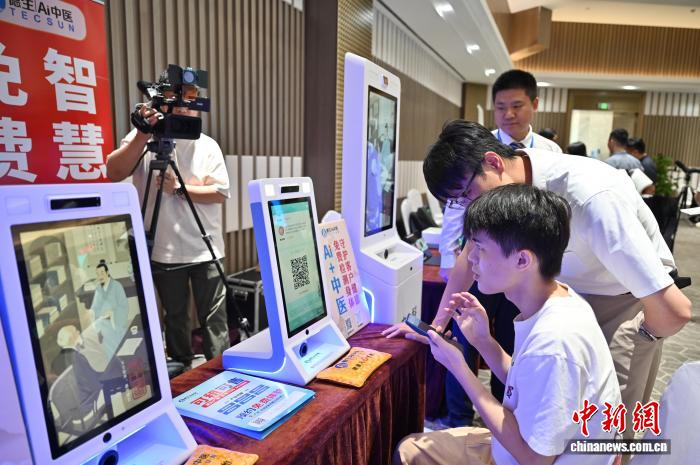 8月20日,十五运会和残特奥会广州赛区科技赋能+超级场景精准对接会在广州(国际)科技成果转化天河基地举行。图为智能中医服务吸引嘉宾参观体验。中新社记者 陈楚红 摄