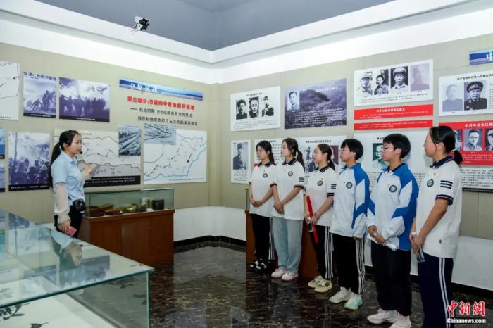 学生在漯河中州抗战纪念馆聆听抗战史。程耀旗 摄
