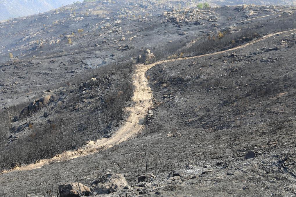 这是8月23日在葡萄牙乌尼艾什-迪塞拉附近拍摄的野火肆虐后的景象。新华社记者荀伟摄