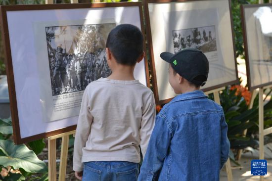 记者寻声步入非洲华文教育基金会中文学校所在院落,通道两侧一个个图片展架映入眼帘——展出的60幅照片再现了中国人民经过14年艰苦卓绝斗争,取得抗日战争伟大胜利的那段历史。