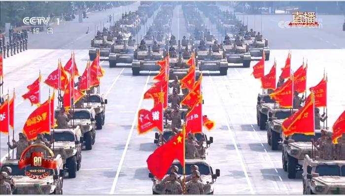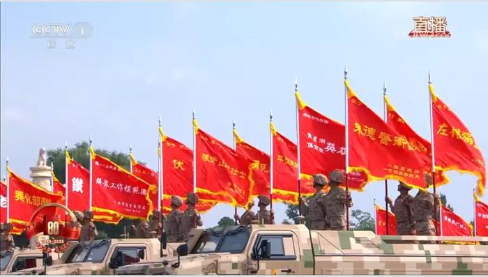 而当来自各军兵种、身着不同颜色军服的一个个徒步方队,正步通过天安门时,那整齐划一的步伐,雄浑嘹亮的口号,再加上虎虎生威的劈枪动作,更可充分展现中国军队纪律严明、士气高昂、一往无前的气势与力量。