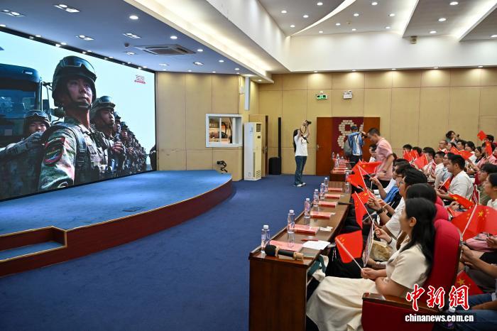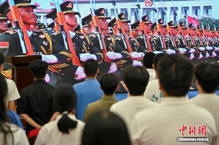 9月3日是中国人民抗日战争暨世界反法西斯战争胜利80周年纪念日。位于广州的暨南大学组织港澳台侨学生集体观看纪念中国人民抗日战争暨世界反法西斯战争胜利80周年大会直播。中新社记者 陈骥旻 摄