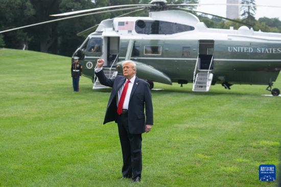 9月7日,在美国首都华盛顿白宫,美国总统特朗普准备登机。新华社记者 胡友松 摄
