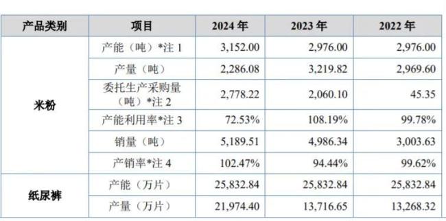 英氏还称,公司于2024年新投产浏阳生产基地,增加了米粉产线产能。公开资料显示,该生产基地于2024年10月投产。英氏也表示,随着英氏浏阳生产基地的顺利投产,公司已不存在委托生产米粉产品的情况。