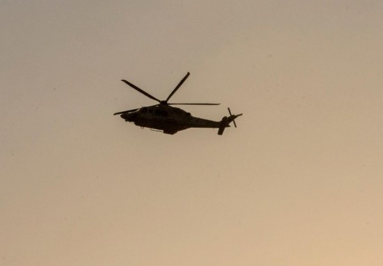 9月9日,在卡塔尔首都多哈,一架直升机在遭以色列袭击的现场上空盘旋。新华社发(尼库摄)