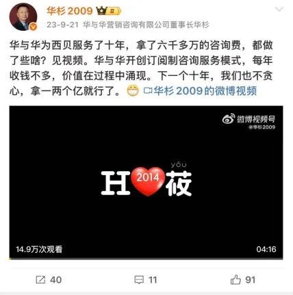 据了解,华与华曾在《跟华杉学品牌营销》的教学文案中表示,品牌出事儿犯错,要买单,不要公关,要承担责任,该赔偿赔偿,该整改整改。认罪伏法就是最佳品牌,甚至可主动加大对自己的惩罚,一次顾客投诉就能赢得一个终身顾客。