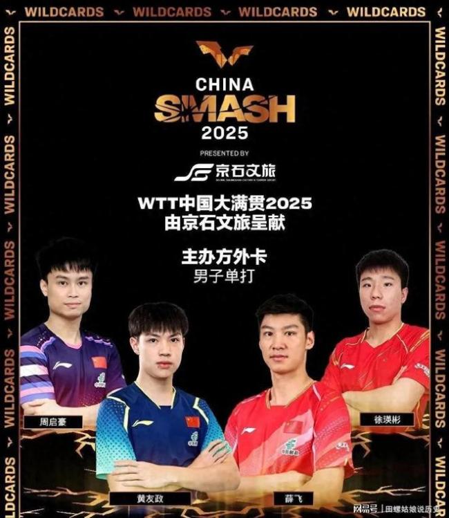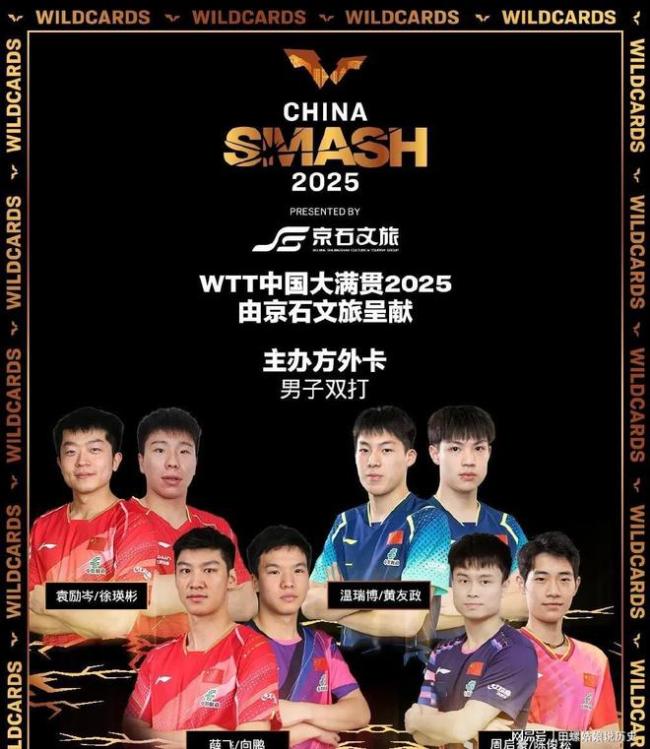 男双外卡组合为袁励岑/徐瑛彬、薛飞/向鹏、黄友政/温瑞博、周启豪/陈俊菘。女双外卡组合为陈幸同/钱天一、覃予萱/纵歌曼、王晓彤/徐奕、王艺迪/张安。混双外卡组合为薛飞/钱天一、黄友政/陈熠、蒯曼/陈垣宇、王艺迪/原价额。WTT提名的选手包括平野美宇/马特洛娃、拉森福斯/罗伯勒斯。