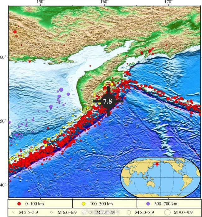 堪察加东岸附近海域7.8级地震 已引发海啸但无灾害影响!中国自然资源部海啸预警中心发布消息,2025年9月19日2时58分(北京时间),堪察加东岸近海海域(北纬53.1度,东经160.6度)发生7.8级地震,震源深度为20千米。根据最新监测分析结果,此次地震已经引发海啸,但不会对我国沿岸造成灾害性影响。
