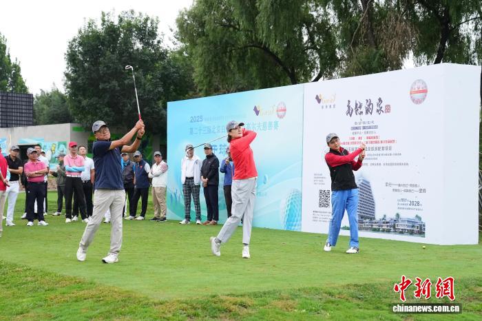 图为嘉宾代表为第23届北京白鹭高帝杯高尔夫慈善赛开球。主办方供图
