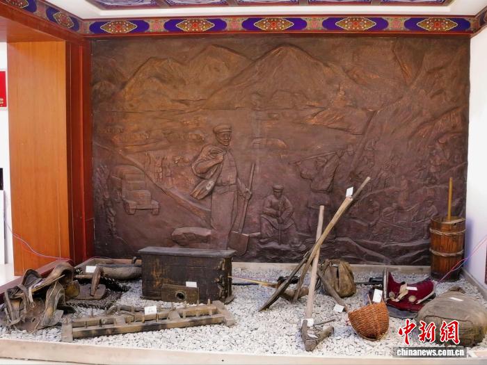 图为玛沁县铸牢中华民族共同体意识教育实践基地内展出的修路工具。陈宗淇 摄
