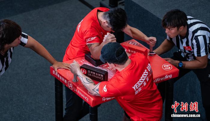 图为两名参赛选手奋力争胜。中新网记者 侯宇 摄