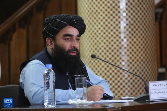 10月12日,阿富汗政府发言人扎比乌拉·穆贾希德在首都喀布尔举行的记者会上发言。新华社记者 李昂 摄