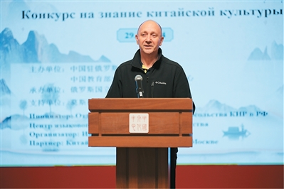 2024年11月,易福成在“全俄大学生中国文化知识大赛”开幕式上致辞。