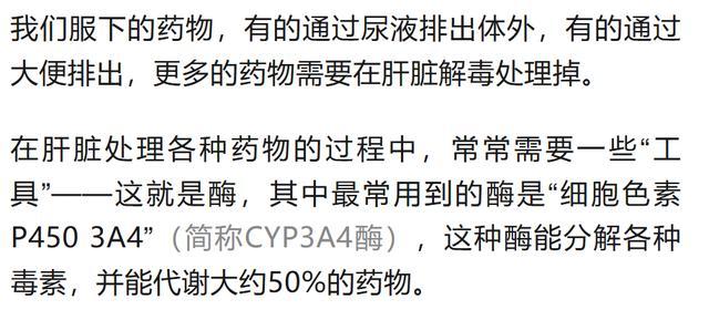 部分他汀类药物、免疫抑制剂、红霉素、氯雷他定、多潘立酮等药物,都需要通过细胞色素P4503A4代谢,非专业人士很难全部掌握。