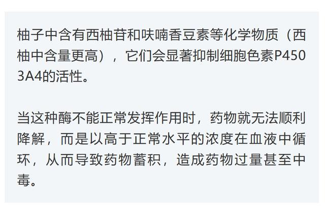 医生提醒,柚子尤其是西柚(又名葡萄柚)中的某些成分,可以使很多药物的血液浓度放大数倍,建议服药期间先别碰柚子。