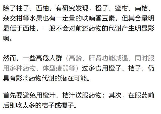 柚子与药物相互作用的严重程度,取决于患者、药物和柚子食用量。