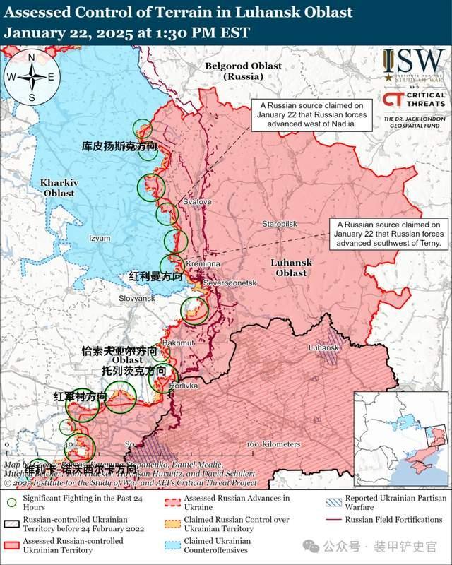此后,俄军继续沿着这一方向扩大战果,一路向西北推进,于2024年7月接近乌军在乌东战线上的防御枢纽波克罗夫斯克(红军村)。其他方向上的俄军也在哈尔科夫北部、库皮扬斯克、红利曼、恰索夫亚尔、托列茨克和维利卡-诺沃西尔卡等地对防守的乌军施加压力,这种压力贯穿了2024年一整年和2025年至今,致使乌军在长达两年多的时间里步步后退,失守多个要地。