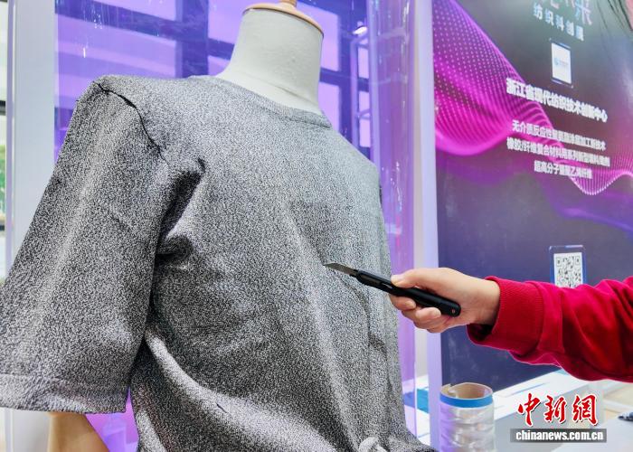 11月5日,浙江省现代纺织技术创新中心研发的超高分子量聚乙烯纤维服装,相比传统防护服饰具有更轻便、更防切割等特质。中新社记者 张斌 摄
