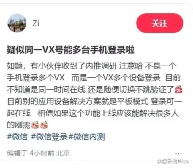 微信被曝探索多台手机登录同一账号 功能内测引关注!今日有媒体报道称,部分微信用户收到来自官方的调研邀请,内容显示微信正在探索“多台手机登录同一账号”功能,允许用户通过授权在多部移动设备上同时在线使用微信。这一消息迅速引发行业关注,被视为微信在多设备协同场景下的重大突破,但同时也引发了对用户隐私与账号安全的广泛讨论。