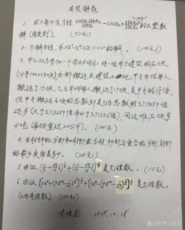 那几个月,他反复纠结同一个问题,却始终解决不了。实在太痛苦了,他把茶叶盒用胶带缠了起来。可没过几天,他又忍不住拆开。他说:“数学就是这么吸引着我。”今年9月,他把手稿交给了一个叫小张的姑娘。小张是他打扫的大楼里的职员,曾帮他运过东西。李培盛心想,万一哪天自己不在了,这些稿子也不至于被丢进垃圾堆。小张把手稿整理成视频发在网上,没想到这个故事火了。有数学专业人士指出,李培盛的研究并不新颖,水平略高于高中数学课本。但他对数学那份纯粹而持久的热爱依然打动了无数人。有一条评论在网络上流传:“如果最后这个爷爷发现,自己用一辈子研究的东西早就被前人分析透彻了,他会怎么想?”“那么他和第一个证明这个定理的人一样伟大。”视频火了之后,很多网友说想资助他。