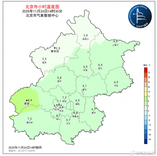 北京此刻云量增多,城区气温低至6℃,出行注意保暖 体感阴冷添衣保暖!11月26日14:30,南郊观象台气温6.8℃(昨日同时次6.1℃),相对湿度35%,目前北京城区气温6~8℃之间。今天下午,天空云量增多,体感阴冷,要注意防寒保暖哦!