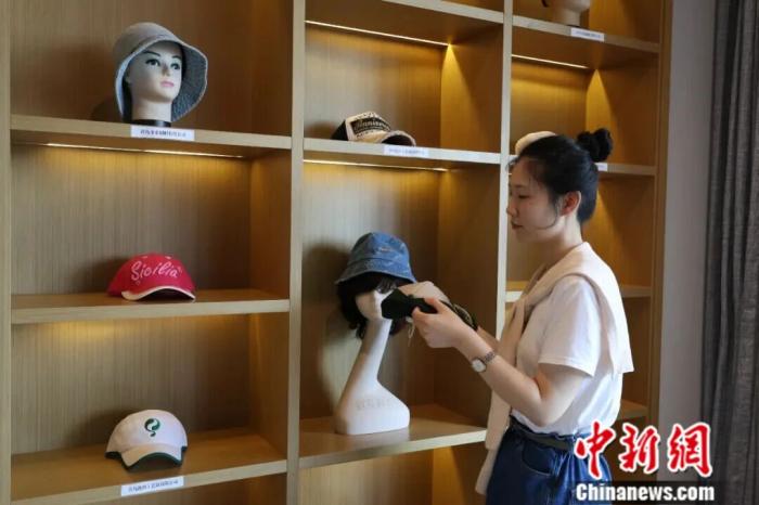 当地招商中心制帽展厅。胶州市委宣传部供图