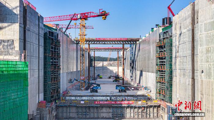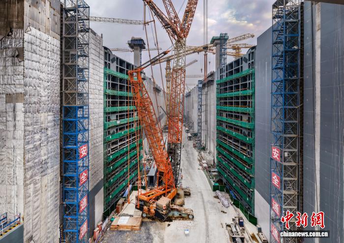 中新网南宁12月8日电 (记者 杨陈)记者8日从平陆运河集团获悉,近日,平陆运河马道枢纽上闸首左线最后一节人字门精准吊装落位,标志着平陆运河枢纽工程船闸人字门吊装工作全部完成,全面转入人字门附件及机电设备安装新阶段,为有序推进无水调试、有水调试奠定坚实基础。
