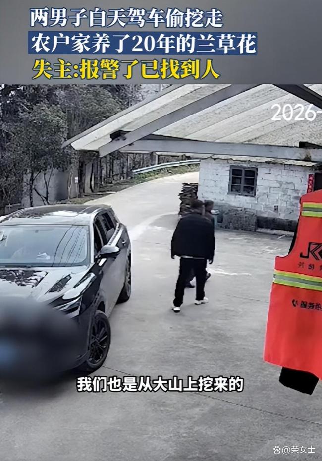 两男子白天驾车偷挖走,农户家养了20年的兰草花 20年心血付诸东流