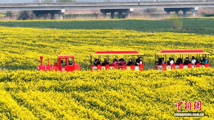 漫步花海间,游客们或拍照留念,或泛舟湖上,尽情享受春日暖阳与花香浸润。