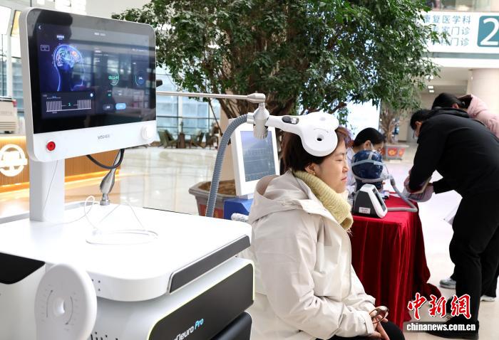 3月19日,市民在山东第一医科大学附属省立医院“世界睡眠日”活动现场,体验经颅磁刺激治疗。赵晓 摄