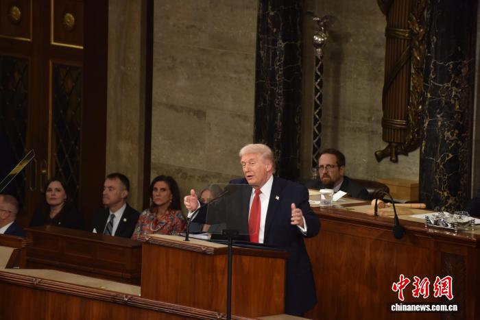 当地时间2月24日晚,美国总统特朗普在国会参众两院联席会议上发表国情咨文讲话,聚焦经济、移民等议题。这是特朗普在本总统任期内首次发表国情咨文。中新社记者 沙晗汀 摄