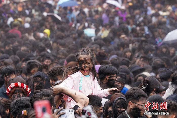 2025年5月2日,哈尼抹黑脸全民狂欢活动在云南墨江县上演。(资料图) 中新网记者 刘冉阳 摄