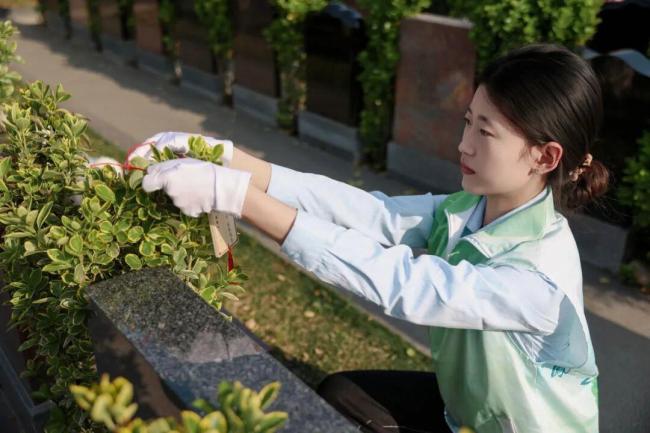 对于洛阳商业职业学院的大二学生张明雨来说,这片园区她已经很熟悉了。学习陵园服务与管理专业的她,和同学一起来到凤凰山生态纪念园实习,他们的工作包括学习葬礼主持、进行代客祭扫、协助整理园区等。当初选这个专业时,家里人有点反对,觉得不太吉利。后来经过慢慢沟通,他们也理解了,最终支持了她的决定。张明雨坦言自己有些轻度社恐,所以选择了殡葬这一行。“这个行业很纯粹,你用心做好服务,家属能感受到,逝者也能得到尊重。不需要太多寒暄和社交,踏实做事就行。”