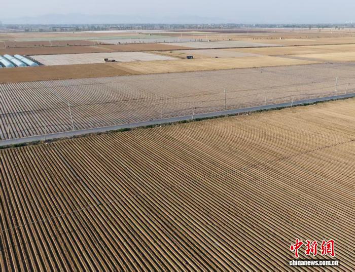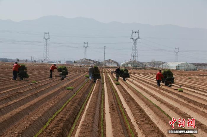 春日时节,山西省忻州市忻府区南湖村,村民们正抢抓农时,利用新技术进行葱苗移栽。张媛摄