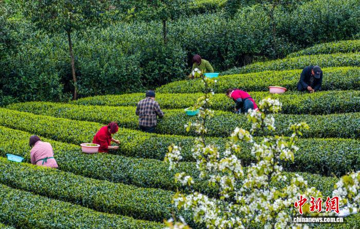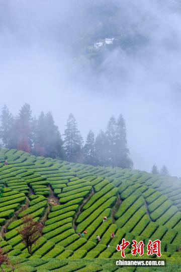 图为恩施花枝山茶园美如画。王关政 摄图为茶农在“画”中采春茶。王关政 摄图为茶园春色绘就乡村画卷。王关政 摄图为茶农在田间采摘茶叶。王关政 摄图为茶农在茶园采茶。王关政 摄图为花枝山村的茶叶基地。王关政 摄