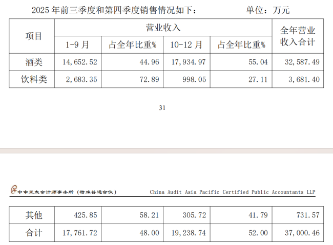 2025年Q4,公司实现营收1.72亿至1.92亿元,约占全年收入的一半。其中,酒类收入1.79亿元,占全年酒类收入的55%;鹿龟酒单季贡献1.4亿元,占该品类全年收入的79%。