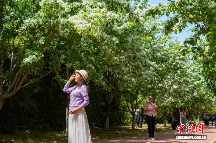 图为游客驻足拍摄留影。中新社记者 范晓恒 摄