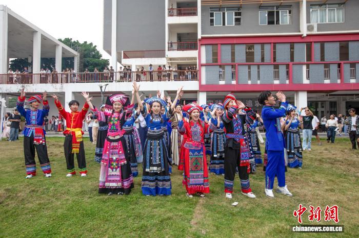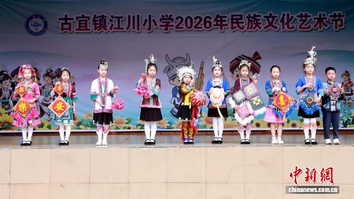 图为在广西三江侗族自治县古宜镇江川小学,学生在参加民俗展演活动。龚普康 摄