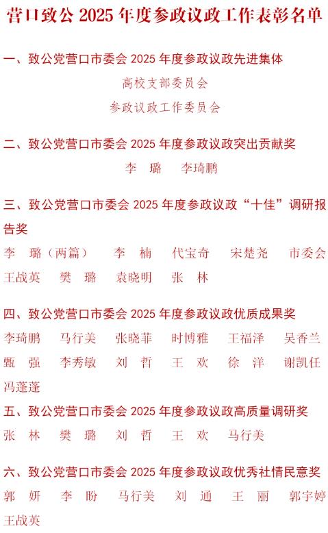 致公党营口市委会召开2025年度参政议政总结会暨2026年度参政议政立题会议